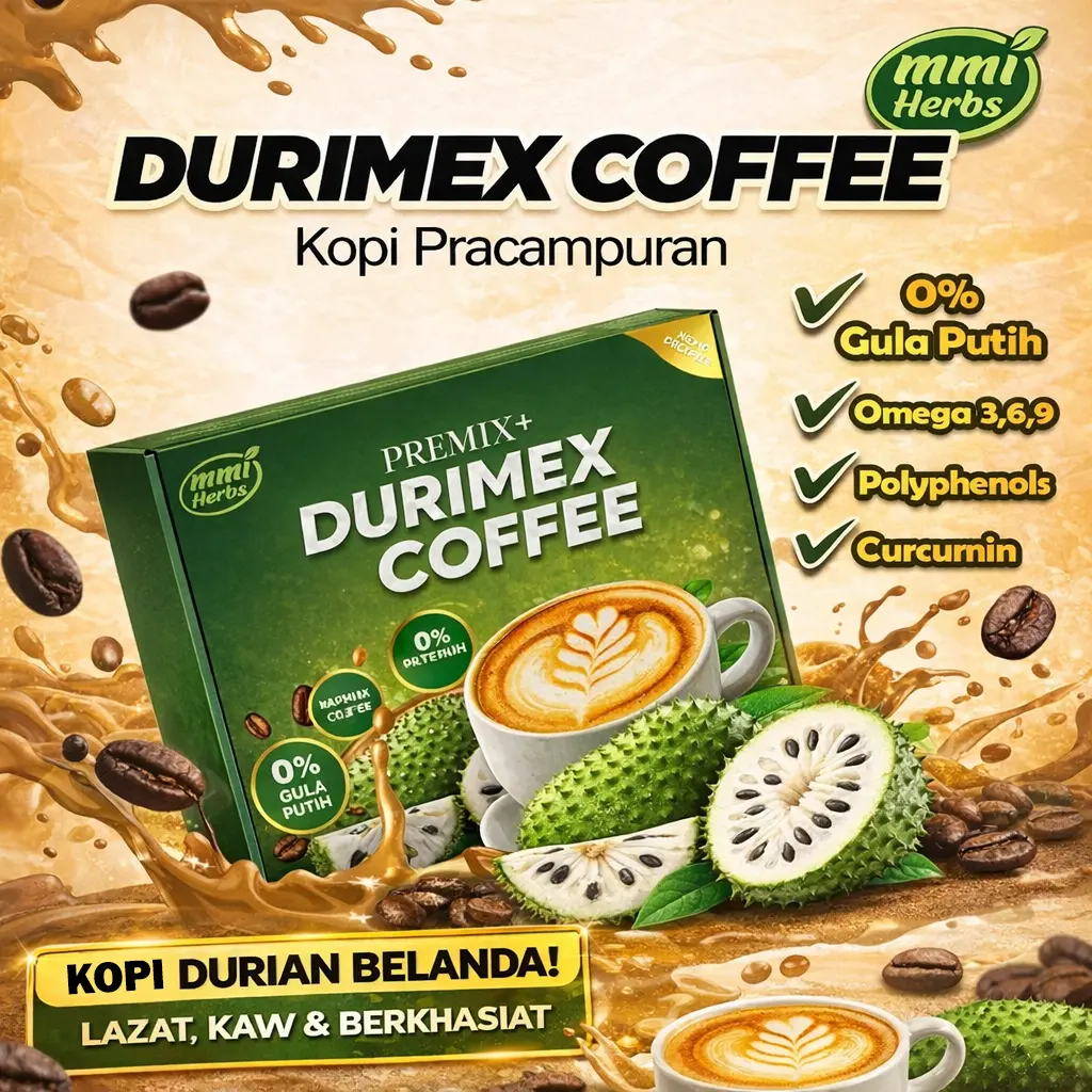 Kopi Durimex adalah minuman botani berasaskan kopi yang diformulasikan dengan Buah & Daun Durian Belanda, Kunyit Hitam & Daun Sacha Inchi untuk menyokong kesihatan saraf & tenaga harian.